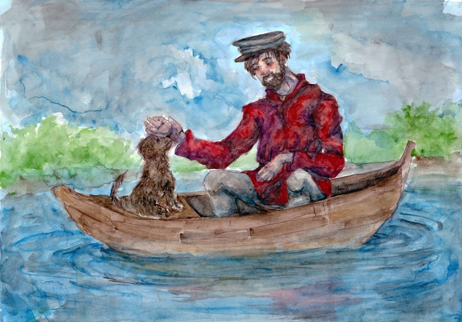 Однажды он спас тонущего щенка. Принес его к себе в каморку и выходил. Так в его жизни появилась Муму, умная и добрая собачка. Барыне она не понравилась. Она приказала убрать ее со двора. Герасим очень любил Муму, но не смог ослушаться хозяйку. Он утопил собачку в реке.