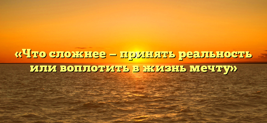 Принять реальность или воплотить мечту — что сложнее? Не так просто дать однозначный ответ на этот вопрос. Но я склоняюсь к тому, что принять реальность сложнее. Ведь очень часто мы живем в мире своих мечтаний, и нам хочется, чтобы все происходило именно так, как мы себе представляем. Но реальность не всегда соответствует нашим ожиданиям.