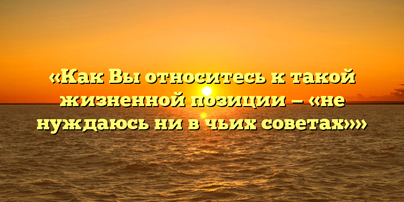 Я отношусь к жизненной позиции «не нуждаюсь ни в чьих советах» с некоторым сомнением. Каждый человек имеет право на свое мнение и свободу выбора, но продуктивное взаимодействие и обмен опытом с другими людьми могут быть очень полезными.