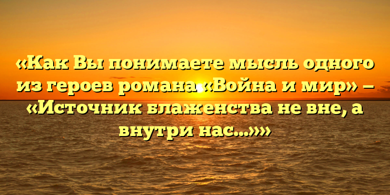 Публикуем свежие сочинения 2026 года по теме «Как Вы понимаете мысль одного из героев романа «Война и мир» — «Источник блаженства не вне, а внутри нас…»».