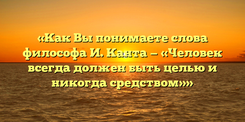 «Как Вы понимаете слова философа И. Канта — «Человек всегда должен быть целью и никогда средством»»: Вариант 1