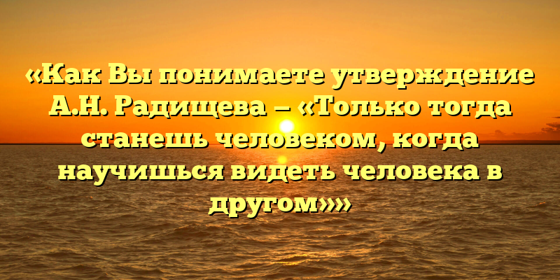 - 7 лучших сочинений на тему «Как Вы понимаете утверждение А.Н. Радищева — «Только тогда станешь человеком, когда научишься видеть человека в другом»»