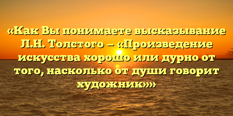 Публикуем свежие сочинения 2026 года по теме «Как Вы понимаете высказывание Л.Н. Толстого — «Произведение искусства хорошо или дурно от того, насколько от души говорит художник»».