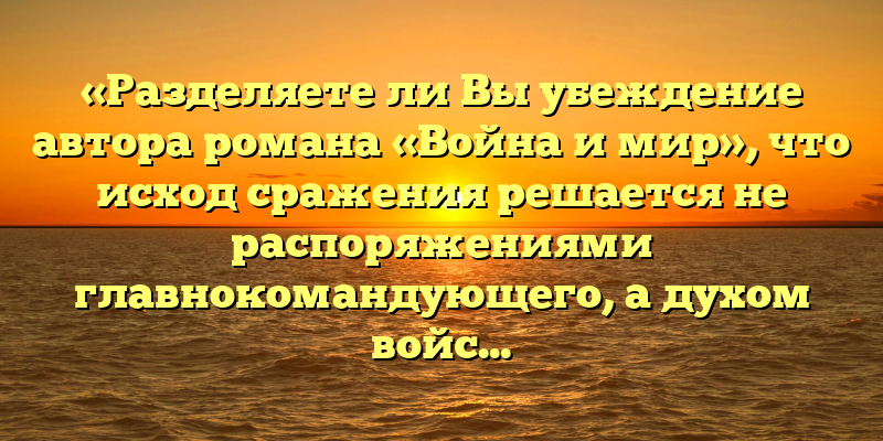 Публикуем свежие сочинения 2026 года по теме «Разделяете ли Вы убеждение автора романа «Война и мир», что исход сражения решается не распоряжениями главнокомандующего, а духом войска».
