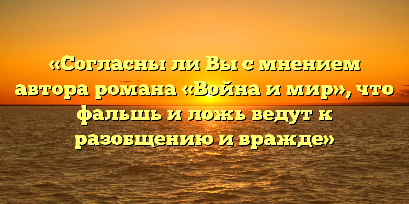 Публикуем свежие сочинения 2026 года по теме «Согласны ли Вы с мнением автора романа «Война и мир», что фальшь и ложь ведут к разобщению и вражде».