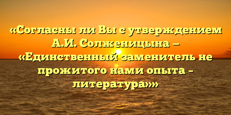 Я считаю, что утверждение А.И. Солженицына о том, что «единственный заменитель не прожитого нами опыта – литература», является правильным. Литература дает нам возможность узнать о мире, о характерах людей и о самом себе, даже если мы не имели опыта, связанного с этими вещами.