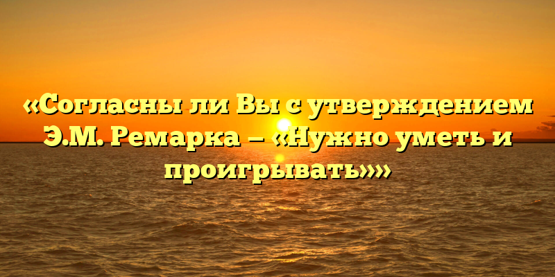 - 7 лучших сочинений на тему «Согласны ли Вы с утверждением Э.М. Ремарка — «Нужно уметь и проигрывать»»