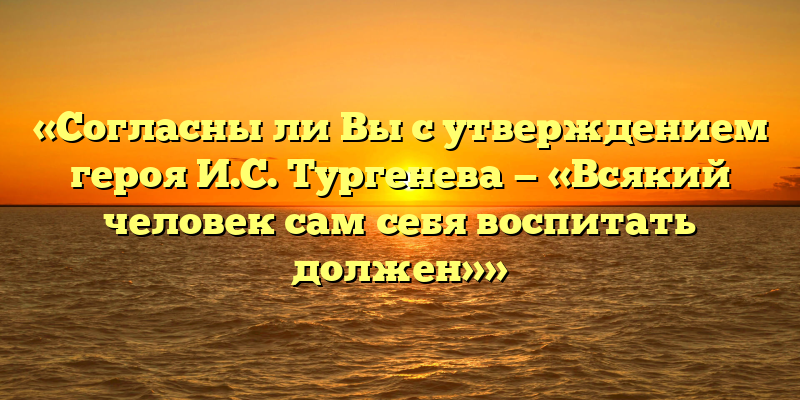Публикуем свежие сочинения 2026 года по теме «Согласны ли Вы с утверждением героя И.С. Тургенева — «Всякий человек сам себя воспитать должен»».