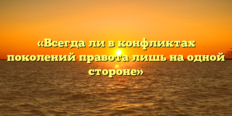 Вопрос о том, всегда ли в конфликтах поколений только одна сторона права, является очень интересным и неоднозначным. Можно сказать, что в каждом конфликте есть свои особенности и нюансы, и нельзя безоговорочно утверждать, что только одна сторона всегда права.